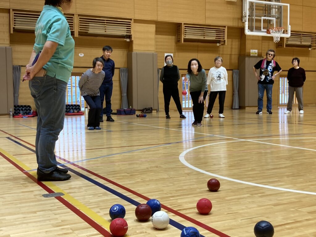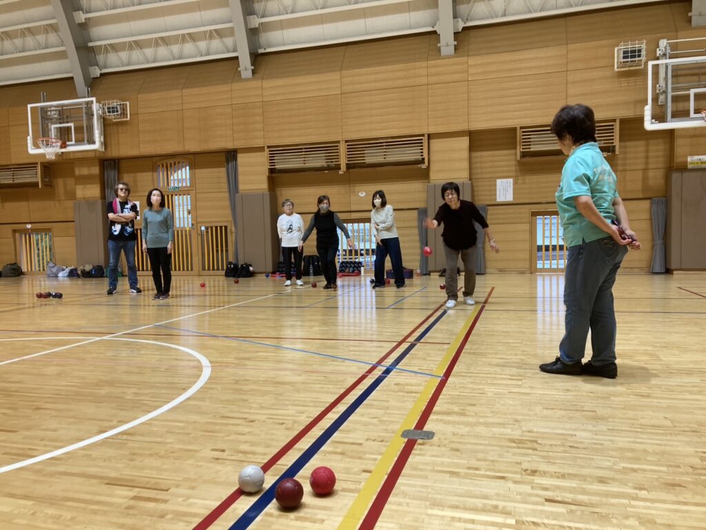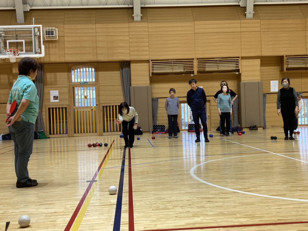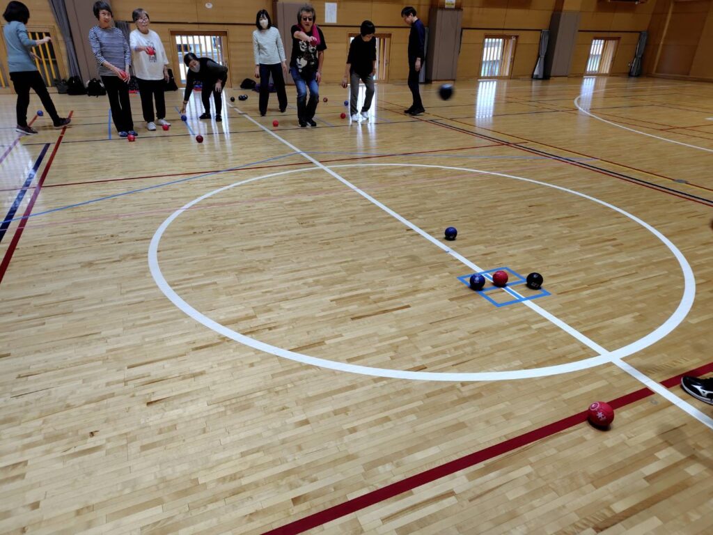参加者8名 ボールの強弱の感覚を覚えるためショートでのプッシュからのラインのせ→ターゲットボックスのせ→ロングでのアプローチ→ジャックアウトの練習後、ゲームを行いました ナイススローもたくさん出て良い試合が行われました!